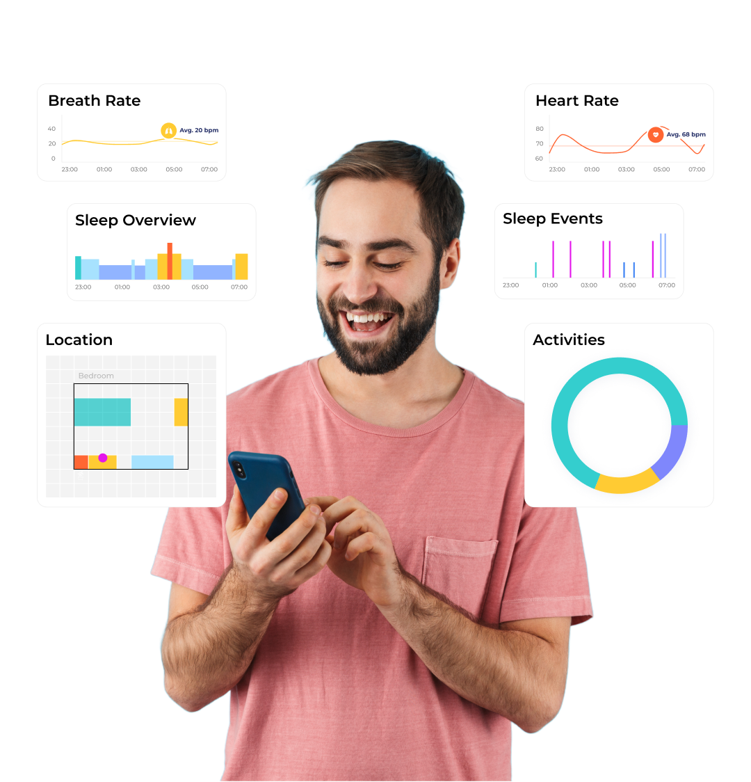 Feel safe with 24/7 monitoring — completely private, with no cameras, no wearables, and no hassle.